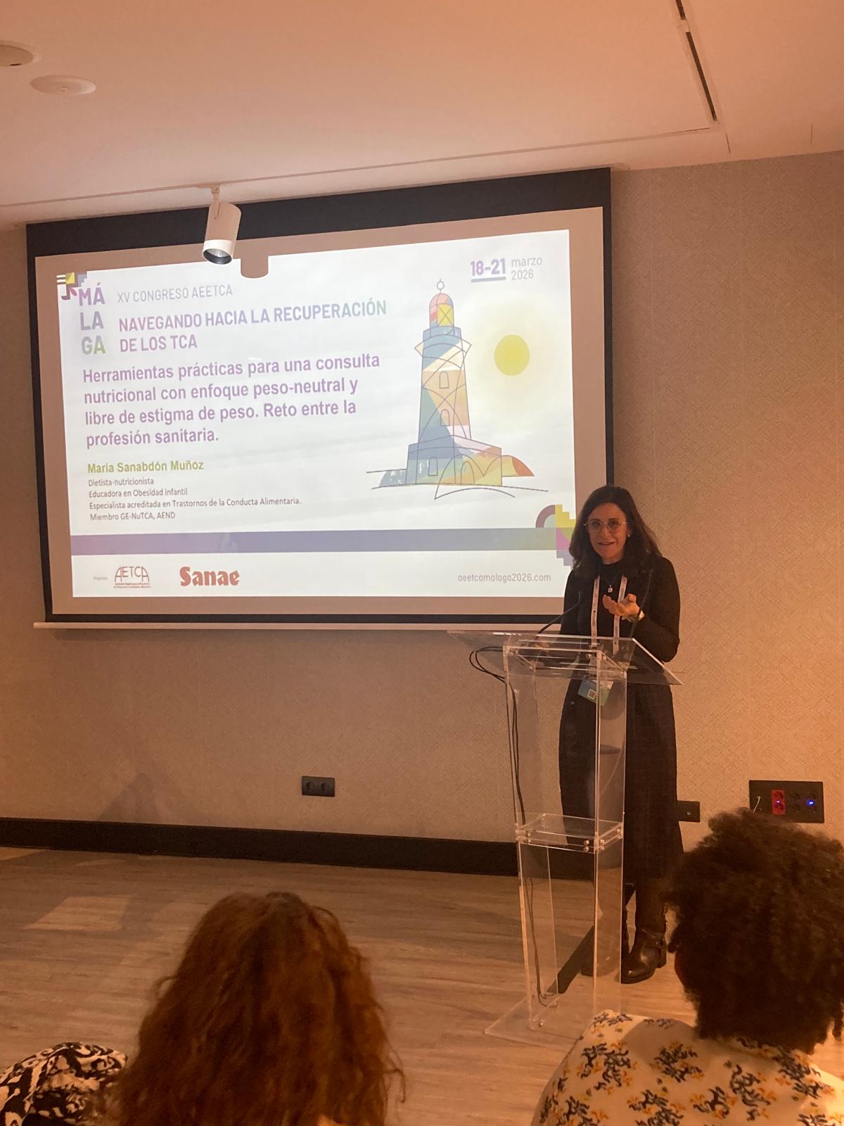 Muy agradecida al comité científico por incluir en el programa la mesa de nuestro grupo GENuTCA de la Academia Española de Nutrición y Dietética, «Redefiniendo la nutrición en los trastornos alimentarios», en la que participé aportando nuestra visión sobre el uso de la báscula y el estigma de peso en la consulta de los TCA.